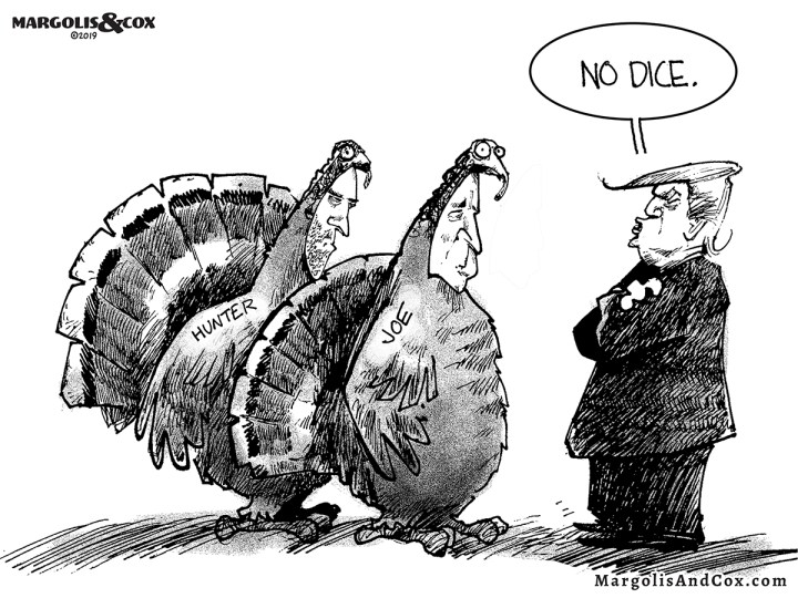 The turkeys Bread and Butter were raised “to remain calm under any condition, which will be very important because they have already received subpoenas to appear in Adam Schiff’s basement,” Trump said.
