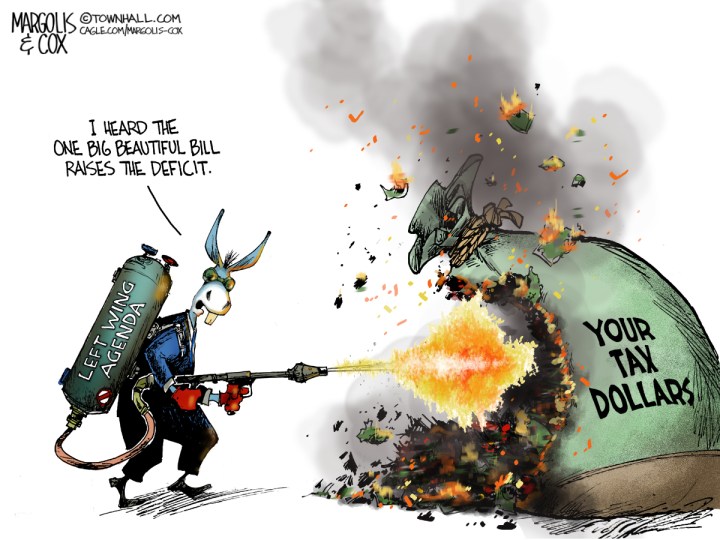 Cartoonsdeficits, Democratic Party, donkey, flamethrower, hypocrites, OBBB, one big beautiful bill, spending, tax dollars