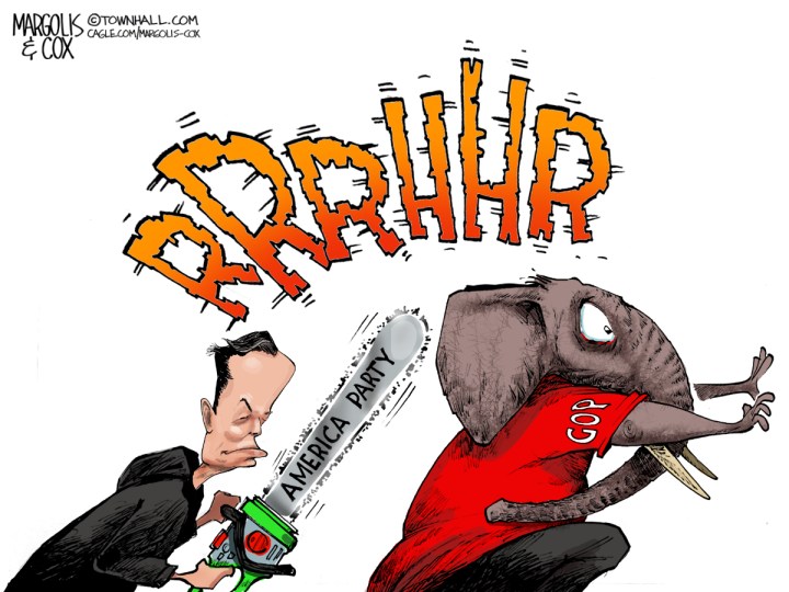 CartoonsAmerica Party, attack, chainsaw, counterproductive, divide, DOGE, Elon Musk, Republican Party, revenge