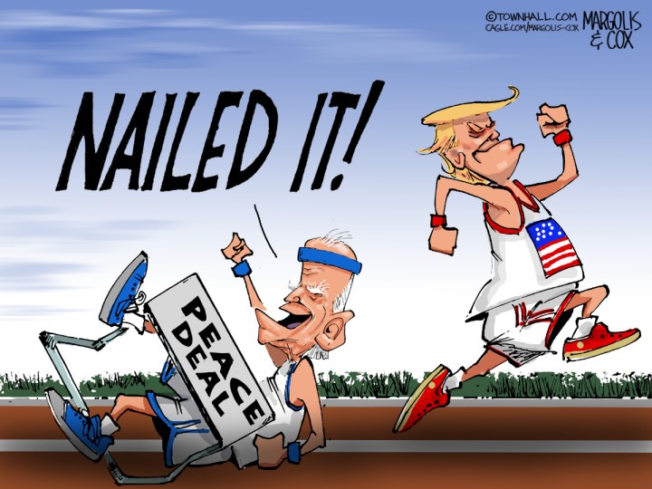 CartoonsDonald Trump, Gaza, Hamas, hurdle, International, Israel, Joe Biden, Middle East, peace deal, president, track