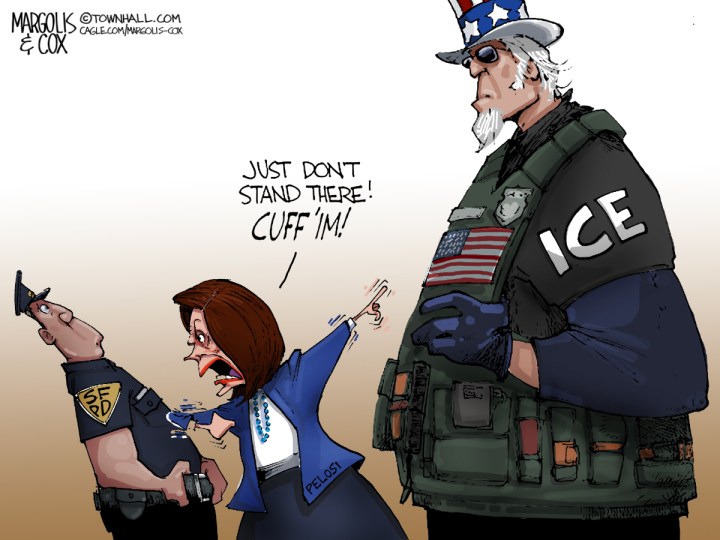 CartoonsCalifornia, Caricature, crime, Domestic Policy, illegal immigration, immigration, Nancy Pelosi, San Francisco, standoff, supremacy clause